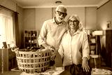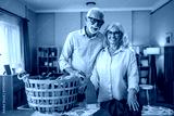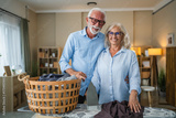 Senior couple sharing household chores while ironing at home
