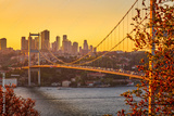 Istanbul Bosphorus Bridge or 15th July Martyrs Bridge at sunset. Istanbul, Turkey