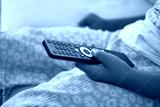 Child holding remote control while sitting comfortably