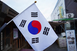 Small Korean National Flag Displayed in a Traditional Market Alley