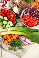 Healthy vegetarian food background. Sliced fresh vegetables.