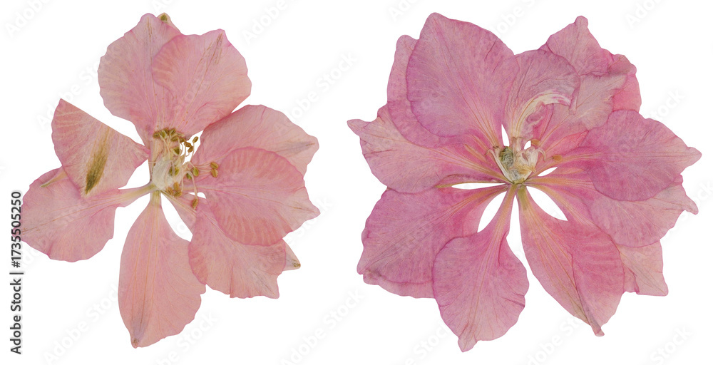 Pressed pink larkspur flowers