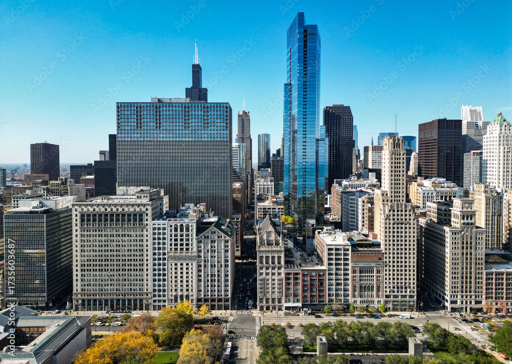 Chicago downtown city skyline. Modern business city landscape. Cityscape with business city district. Chicago cityscape skyline architecture. Skyscraper business area. Chicago cityscape