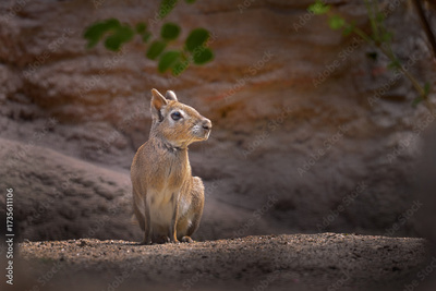 Patagonian mara, Dolichotis patagonum, large rodent, chewing, in the green grass. Mara in the nature habitat, Argentivna in South America. Rodent, mother care in nature. Wildlife Patagonia.