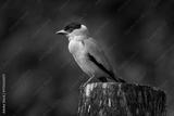 Tityra inquisitor, Black-crowned tityra, Black-crowned tityra, Tityra inquisitor, black grey bird sitting on the tree trunk in the nature, Boca Tapada in Costa Rica. Tityra in nature habitat, jungle.
