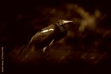 Abdim's white-bellied stork, Ciconia abdimii, in the forest nest, Okavango delta, Moremi, Botswana. River with bird in Africa. Stork in nature march habitat. Wildlife scene from Africa nature