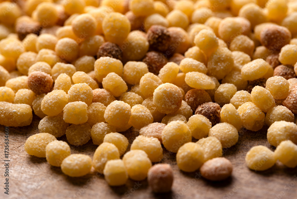 Fregula sarda, tipica pasta artigianale della cucina sarda a base di farina di grano duro e acqua, cibo italiano