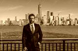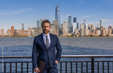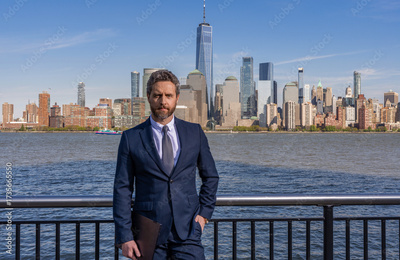 Business success. Successful businessman looking at New York city skyline. Business man in Manhattan. Business success in big city. Businessman achieve success. Seeing opportunities. Office towers