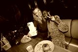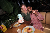 Diverse women friends taking selfie at restaurant