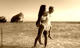 Carefree summer moments by the sea. Best friends, couple laughing, playing, and soaking up the sun