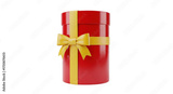 Isolated Red Gift Box with Gold Ribbon and Bow, Celebration of Holiday or Birthday Event