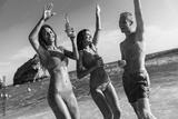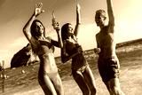 Group of young travelers enjoying a safe beach vacation, highlighting the joy of protected travel