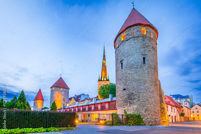 Tallinn, Estonia. Medieval fortified city in Europe, blue hour colors.