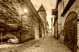 Tallinn, Estonia. Medieval street and Epping Tower in the old town, Middle Ages Europe
