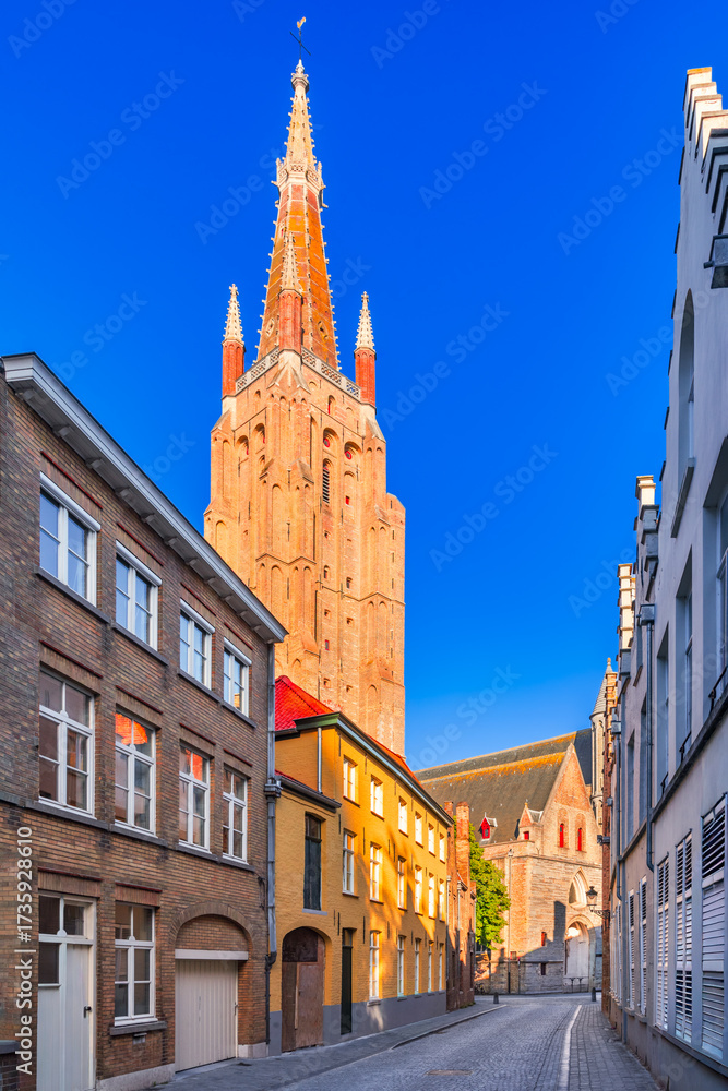 Bruges, Belgium. Onze Lieve Wrouwekerk, famous church in Brugge, West Flanders.