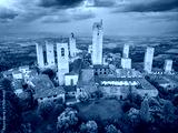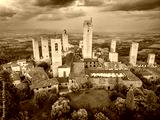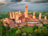 San Gimignano, Tuscany. Picturesque aerial sunset view of medieval city in Italy.