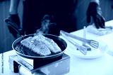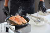 chef cooking salmon steaks in the kitchen