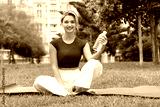 Young woman with bottle of water in park