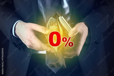 Zero percent commission. Man holding wallet with dollars, closeup