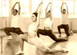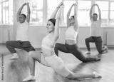 Cheerful young multinational people training synchronous group choreography in modern dance studio