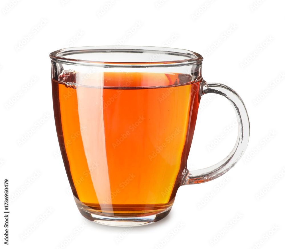 Cup of black tea isolated on white background, closeup