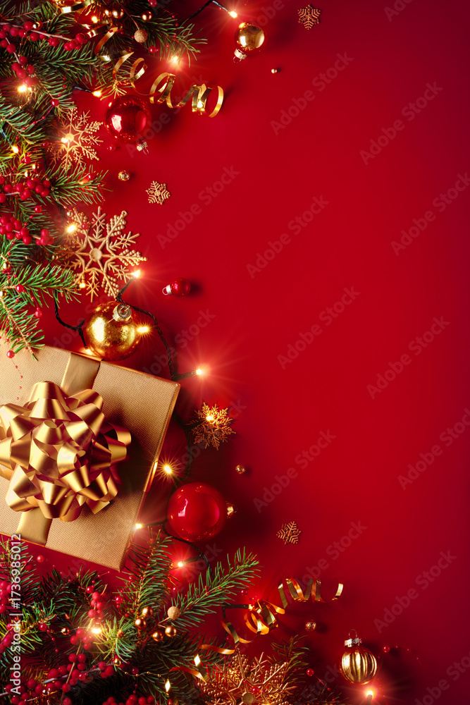 Festive Christmas scene with gold gift box
