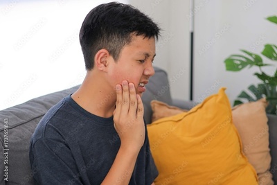 Young Teenager Boy Pressing His Cheeks on Sofa, Struggle with Toothache