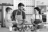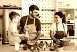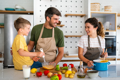 A happy family is cooking together in a bright kitchen, showing joy, teamwork and quality time