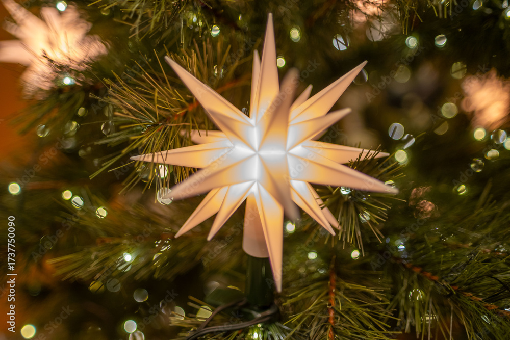 beautifully decorated Christmas tree with red and gold ornaments, twinkling lights, and reflective disco balls, capturing festive holiday cheer, Holiday magic, Winter wonderland