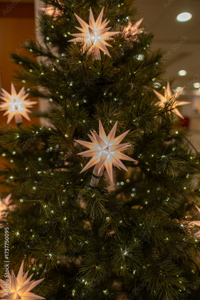 beautifully decorated Christmas tree with red and gold ornaments, twinkling lights, and reflective disco balls, capturing festive holiday cheer, Holiday magic, Winter wonderland