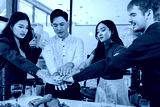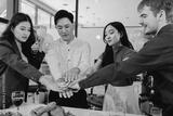 Diversity, dinner and group of people toast celebration together at party. Friends, happy and celebrate with food, wine and friendship for love, support and cheers champagne at business function