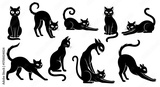Collection of black cat silhouettes in various poses isolated on transparent background