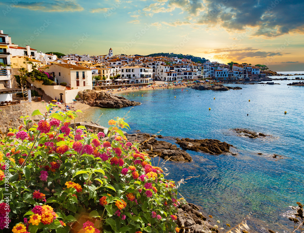 Pueblo costero pintoresco. Calella de Palafrugell, tradicional pueblo pesquero de paredes blancas y un popular destino turístico y vacacional en la Costa Brava, Cataluña, España.