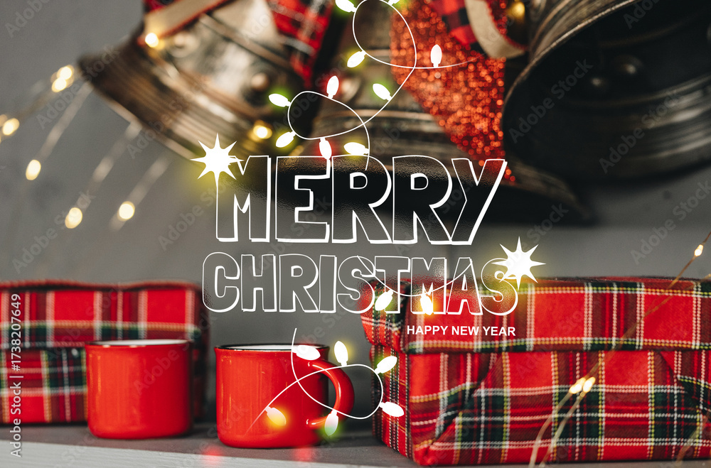 Brightly decorated Christmas scene with gifts and festive lights in a cozy setting