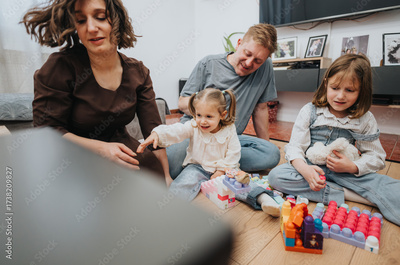 A loving family enjoying activities together on the floor, emphasizing connection and joy.