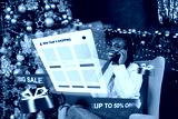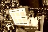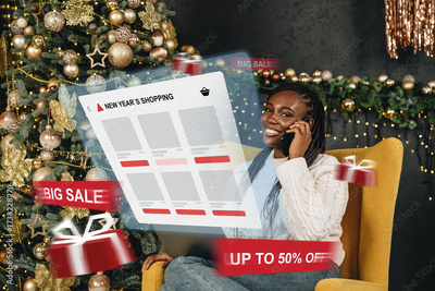 Excited shopper enjoying big sales while celebrating New Year in cozy indoor setting