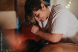 A skilled therapist performs a therapeutic massage on a client to promote relaxation and wellness. Soft lighting and a calm atmosphere enhance the sense of comfort and care.