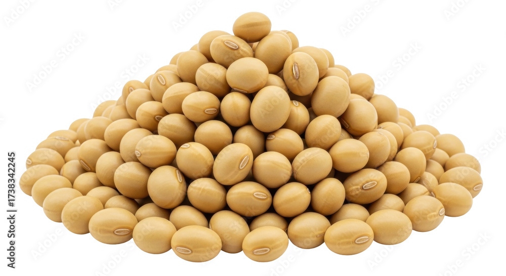Isolated pile of dried soybeans, fresh grains, agricultural commodity for food, vegetable protein