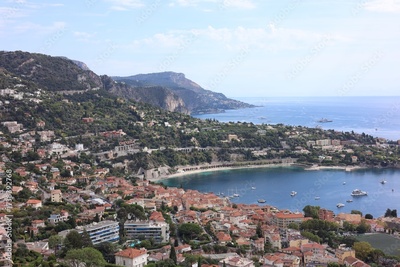 Picturesque view of city, sea and boats under beautiful sky with clouds