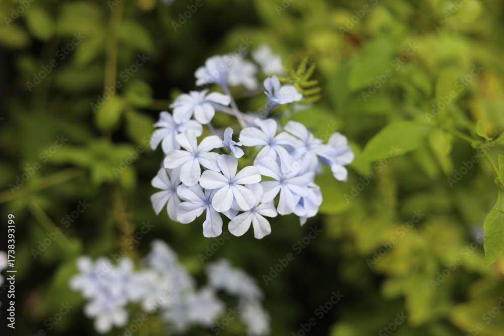 Beautiful blue plumbago flowers growing outdoors, closeup