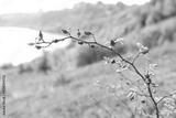 Rosehip plant with red berries growing outdoors