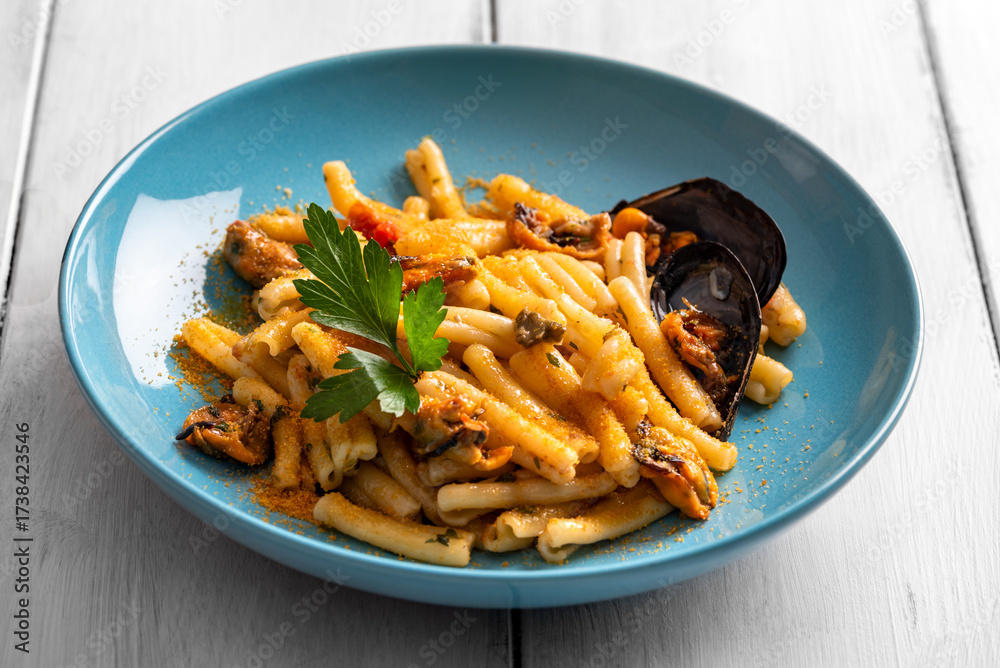 Pasta con cozze e bottarga di muggine, cibo italiano