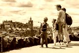 Family with kids enjoys scenic city of Edinburgh skyline view