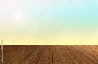 Empty wooden floor and color gradient wall. Space for design