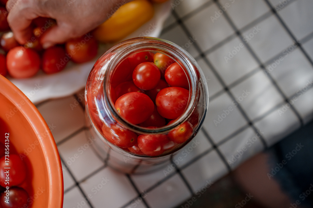 Preserving cherry tomatoes in glass jars