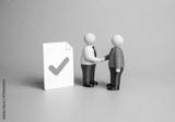 The negotiators reached an agreement. The businessmen sign the contract and shake hands. Cooperation and client management. Concept for partnership, trust, teamwork, and corporate growth.