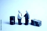 Trade transaction. Purchase of oil for foreign currency. Sale of raw materials and other goods. International trade. Concept for global economy, energy market, and finance policy.