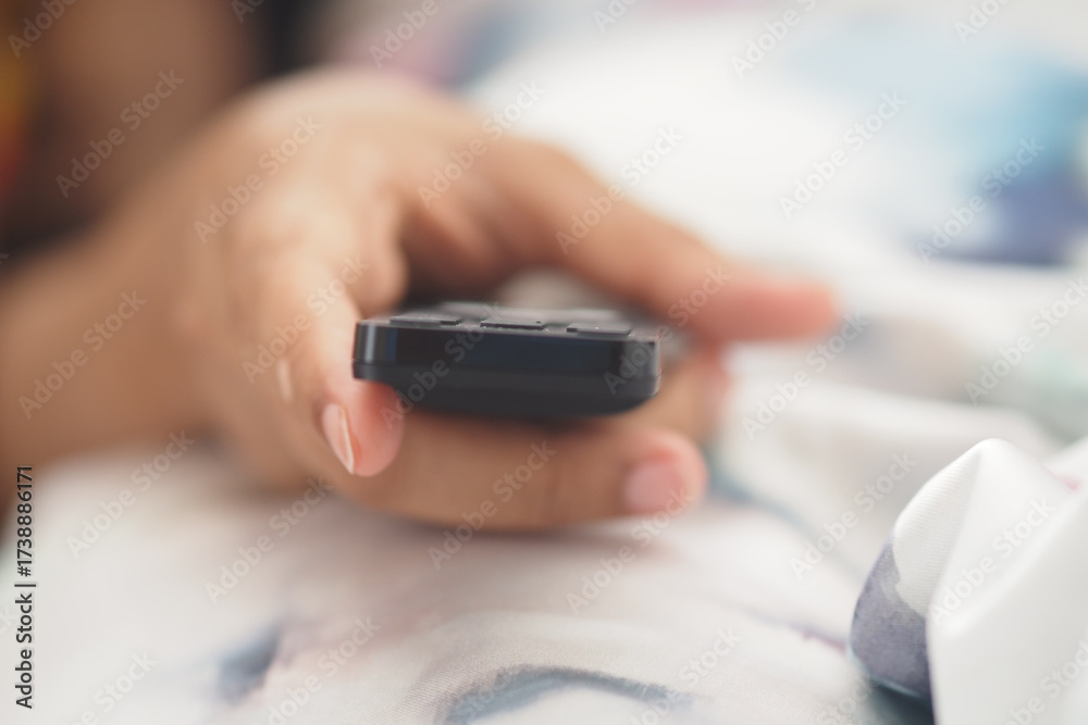 Relaxing at home with a remote control in hand