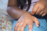 closeup of child suffering itching skin on their hand