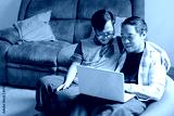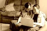 Asian Father and Son with Down Syndrome Using Laptop Together at Home